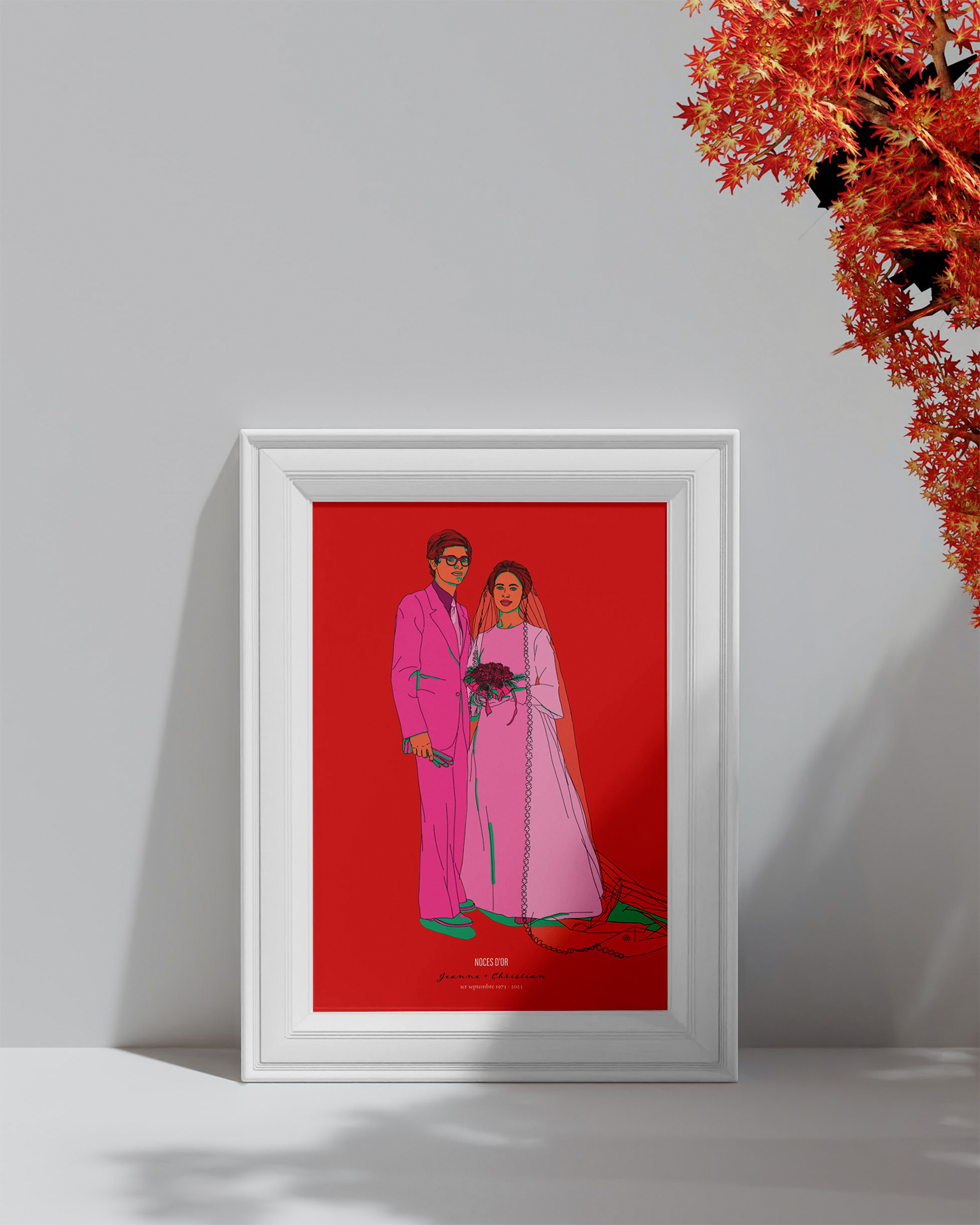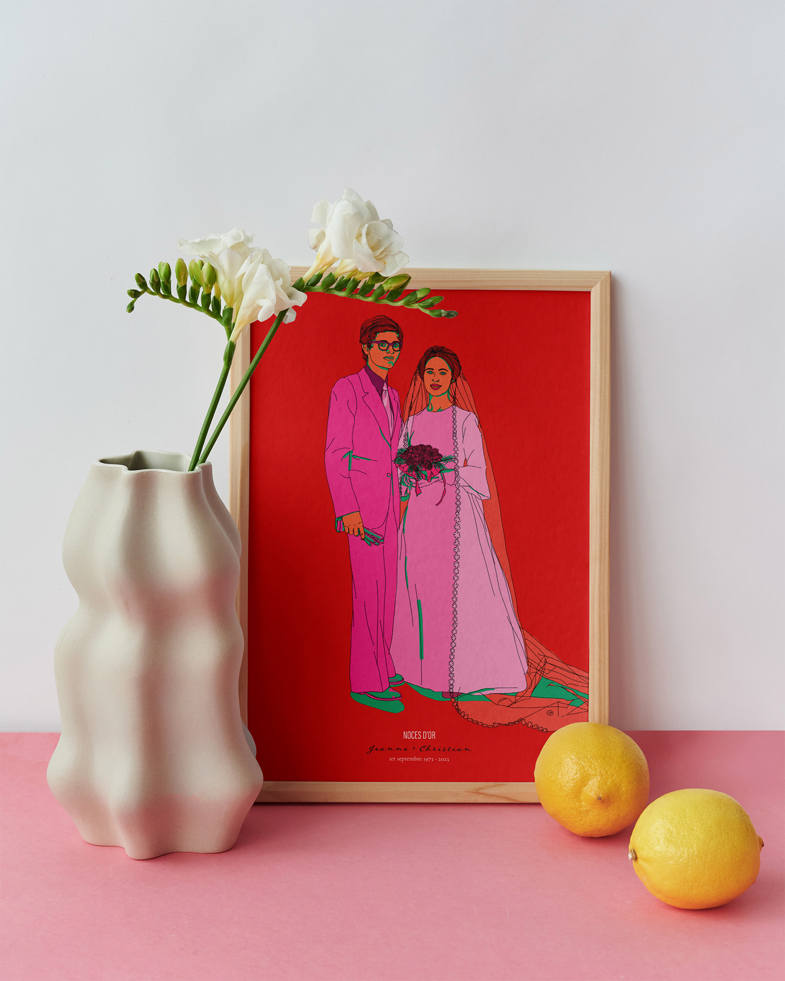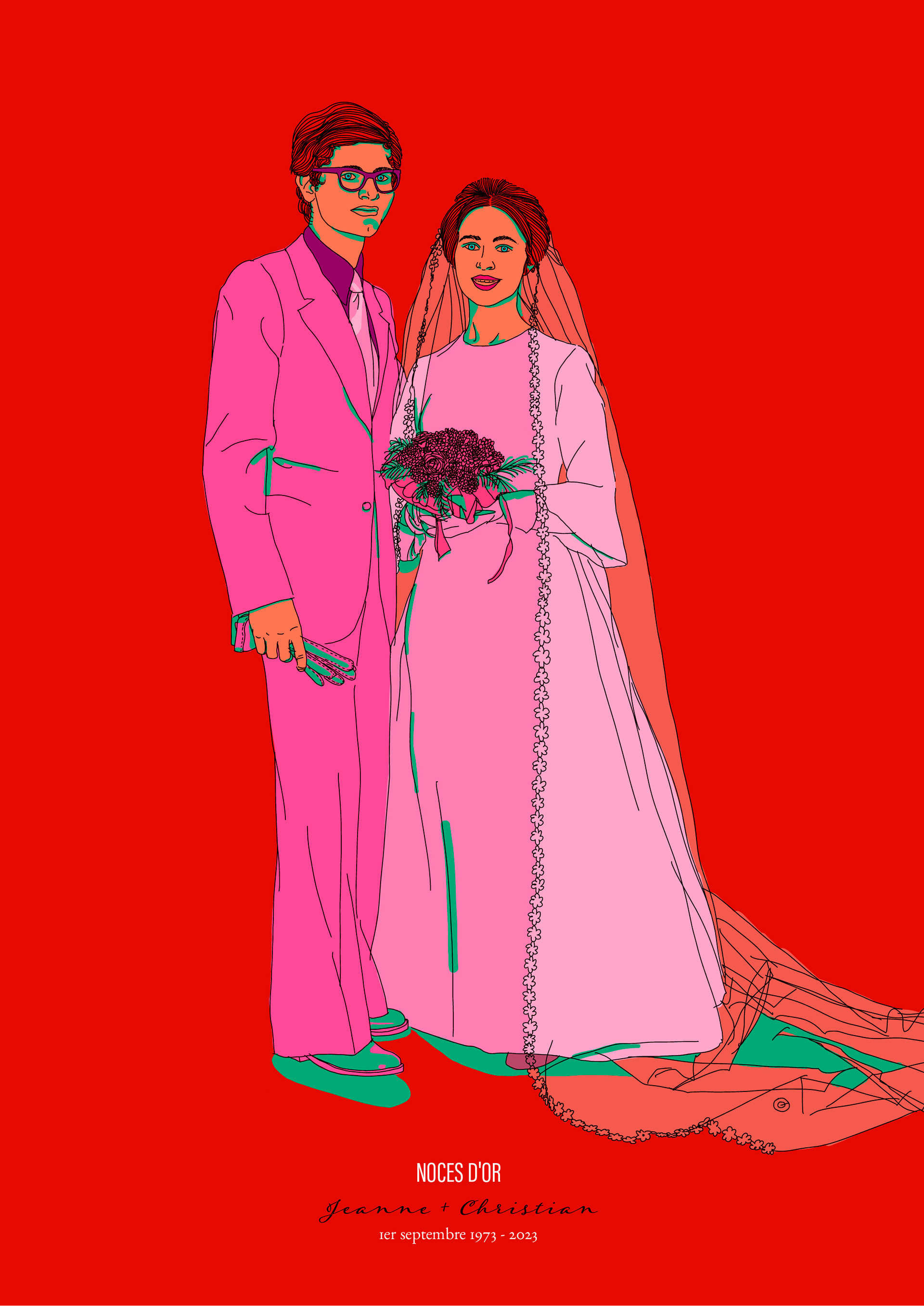 Création d'un portrait de mariage pour cadeau d'anniversaire des Noces d'Or de Jeanne + Christian.