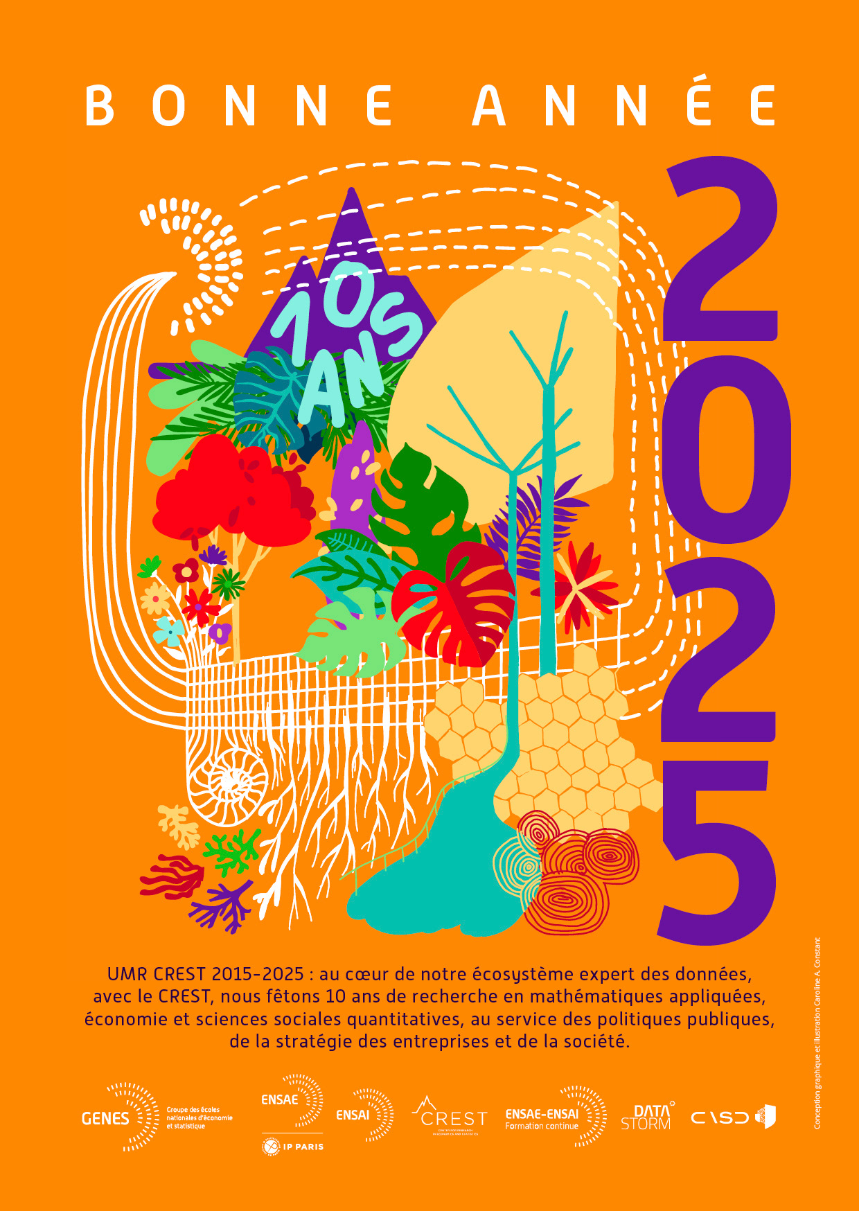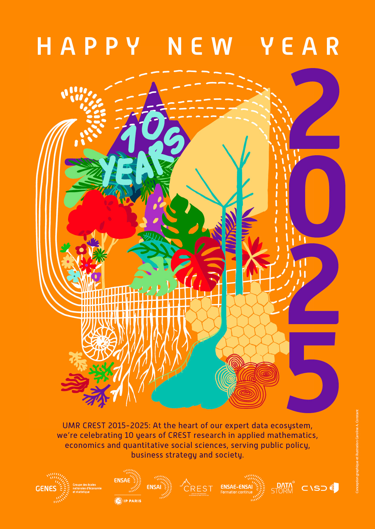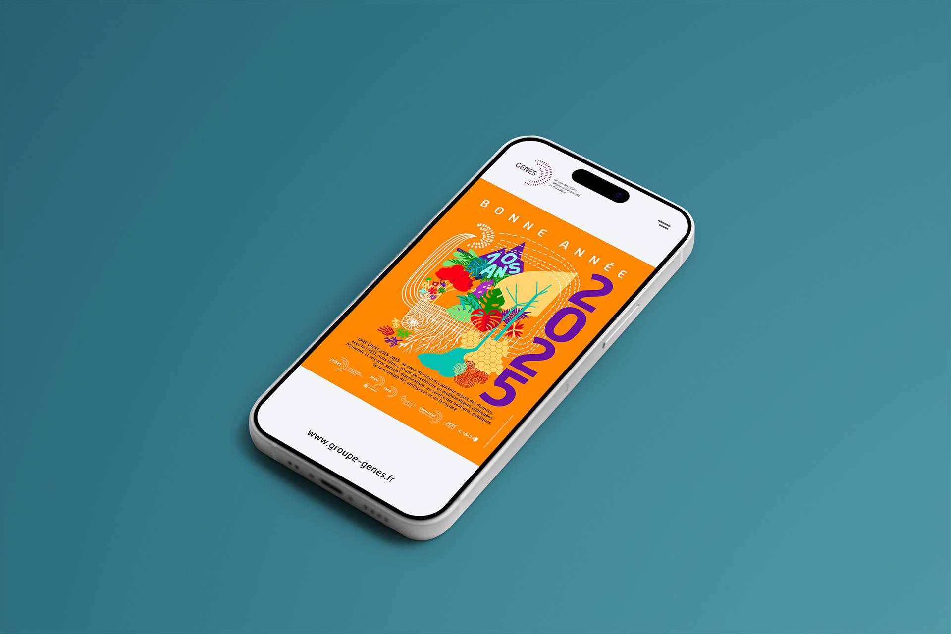 Création d’une carte de vœux professionnelle numérique illustrée pour le groupe GENES (Groupe des Écoles Nationales d’Économie et Statistique). Illustration vectorielle originale, mise en page bilingue français/anglais, format A6 numérique, à destination de leurs agents, enseignants et de l’ensemble de leur réseau professionnel.
