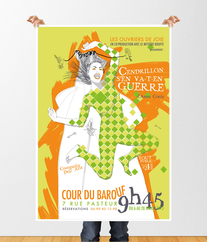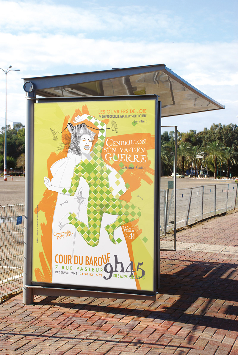 Poster & flyer creation for the « Cendrillon s’en va-t-en-guerre » show, Les Ouvriers de Joie theater company, in the festival of Avignon.