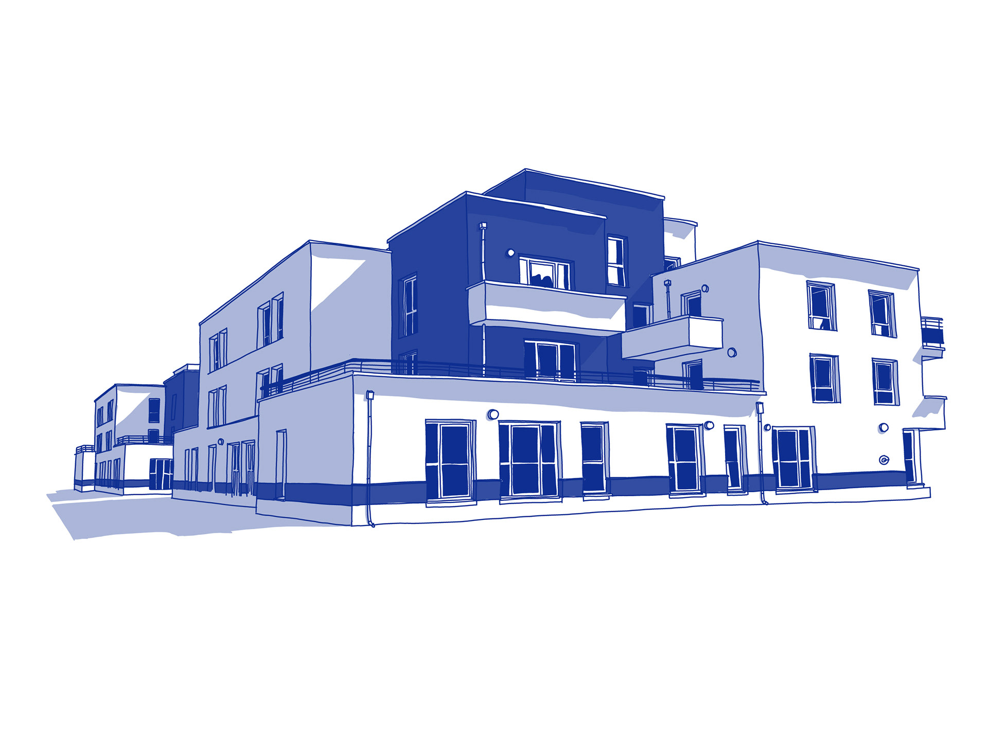 Creation of 2 illustrations for the double cover page and an inside page of the commercial brochure of Proxity, real estate development company / Pelège Group.