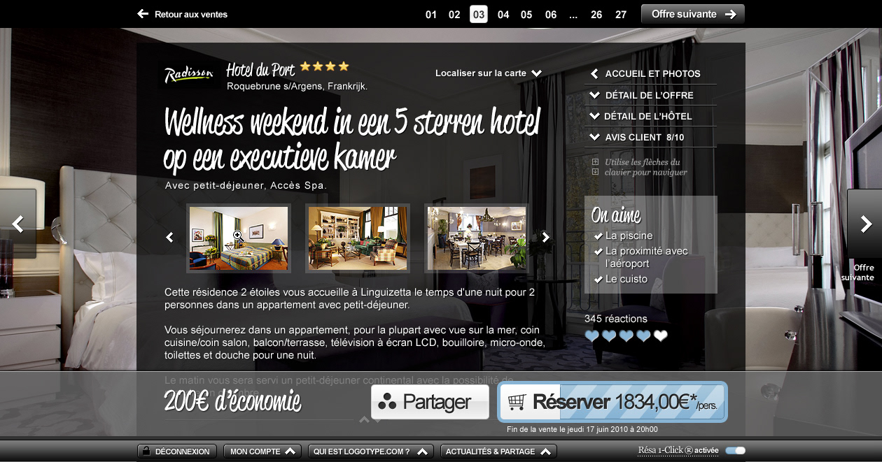 Conception d’un projet de site web de ventes privées de séjours pour Weekendesk, Smartbox Group.